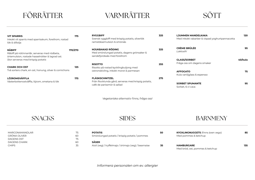 A la carte serveras fredagar 16-20, lördagar 12-20, söndagar 12-15