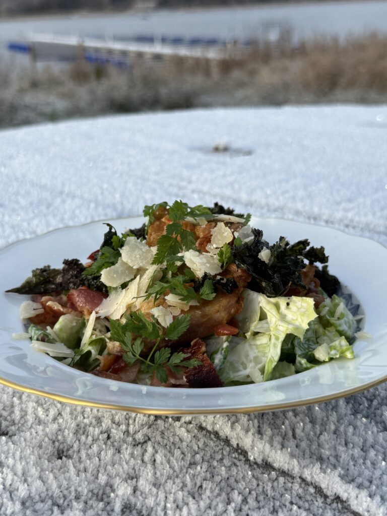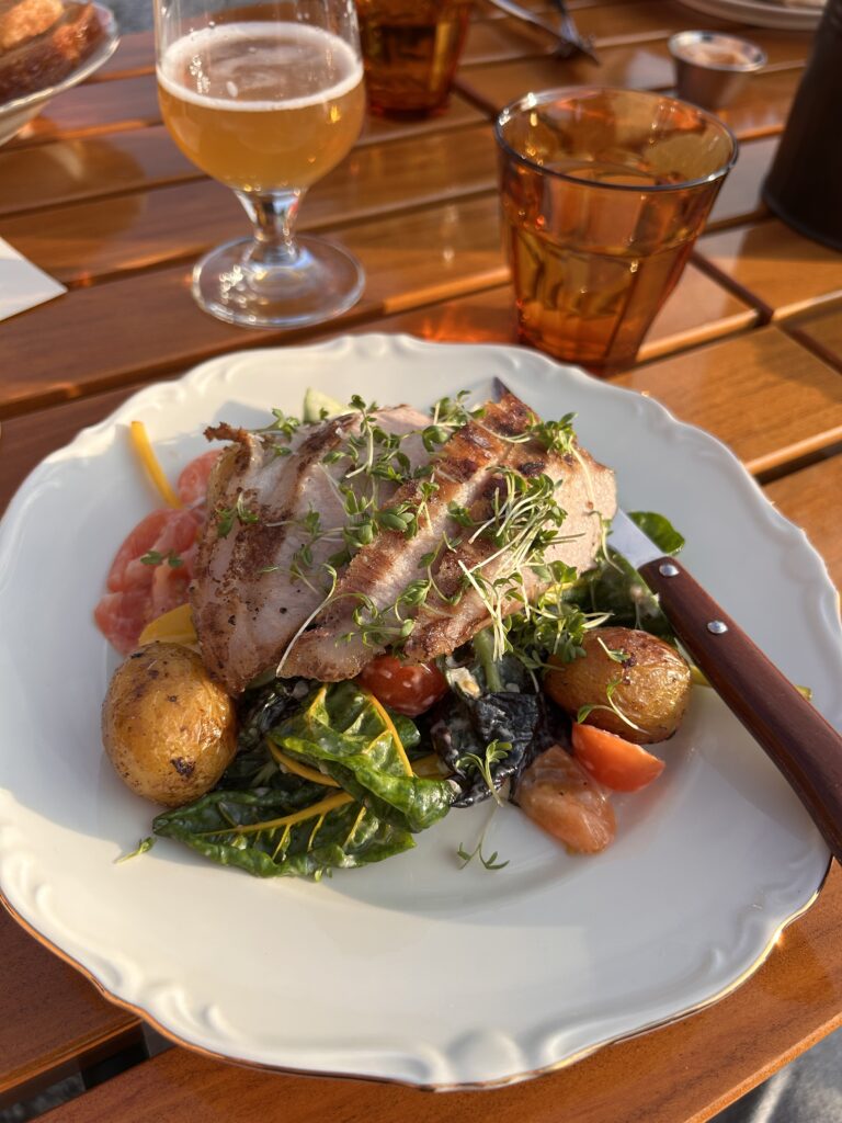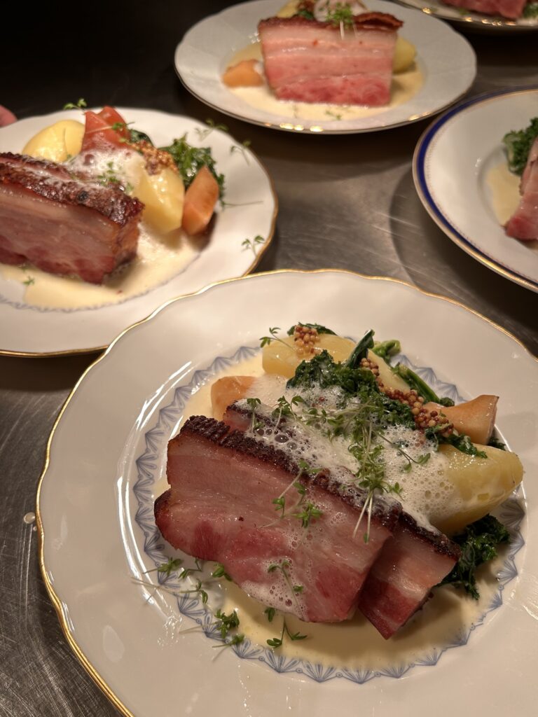 KRISPIG FLÄSKSIDA med gräddkokt grönkål, senapsfrön, smörslungad potatis – 175 kr