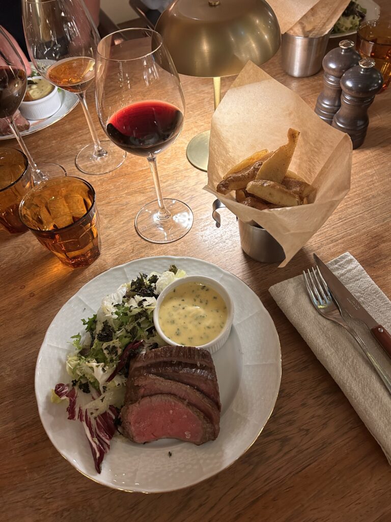 • Fläskschnitzel med krispig potatis och café de Paris-smör – 275