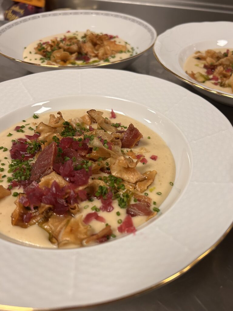 JORDÄRTSKOCKSSOPPA med picklad lök, krispig skocka – 150 kr